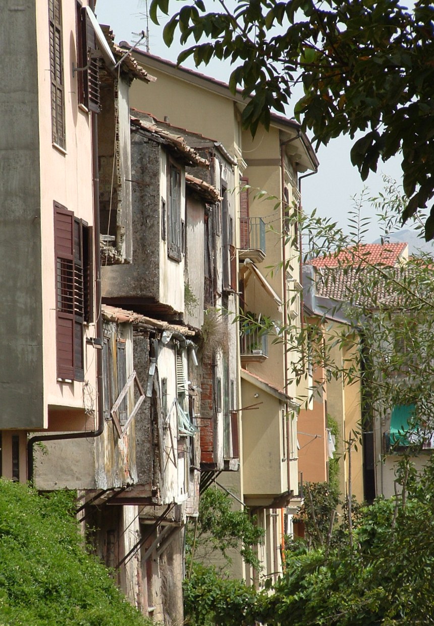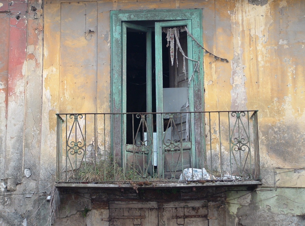 Sembrava che il tempo si fosse fermato: una finestra aperta aveva ancora brandelli di tende mosse da un lieve soffio di vento, le pietre di tufo e i coppi, a malapena si reggevano ai fradici legni dei solai, sui balconi, vasi di terracotta provavano ancora a far vivere qualche seme che era diventato fiore e il latrato di un cane, il miagolio dei gatti e il chiocciare delle galline erano gli unici segni di una presenza.