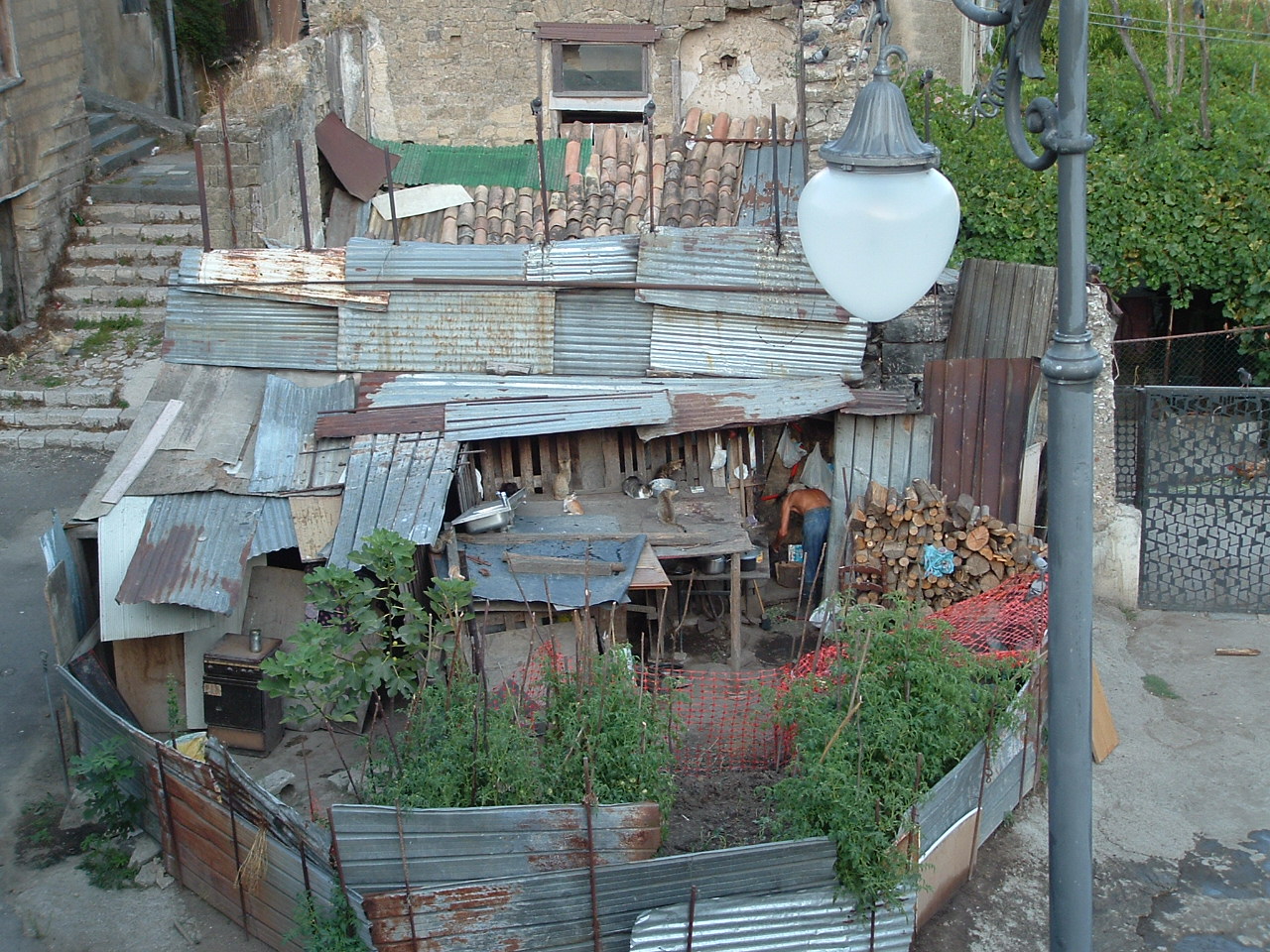 Un contadino strappava le ultime risorse all’unica isca della zona e il suo giaciglio, un ammasso di lamiera su muratura diroccata, sulla quale, in equilibrio, sostavano gruppi di piccioni, pur nel degrado, restituiva una forma di vita al luogo.